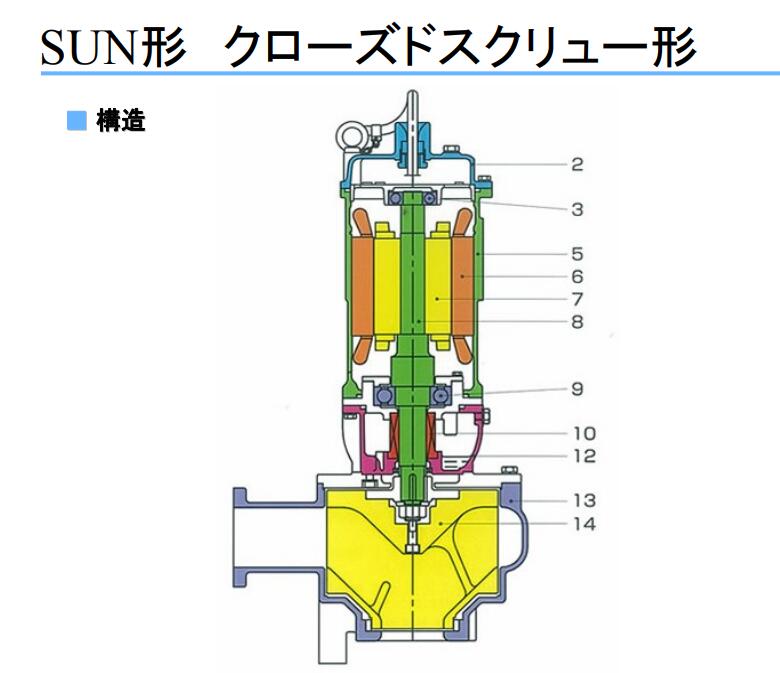 固體廢物潛水泵 | SUN型閉口螺桿式(異物通過直徑100%) | |
