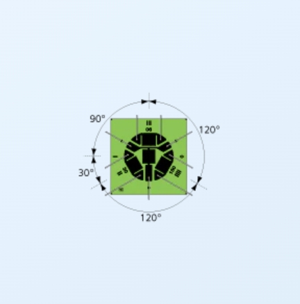 3線式時的0°: 紅色, 90°: 黃色,45°: 藍色的條紋。各種顏色均表示為S。
